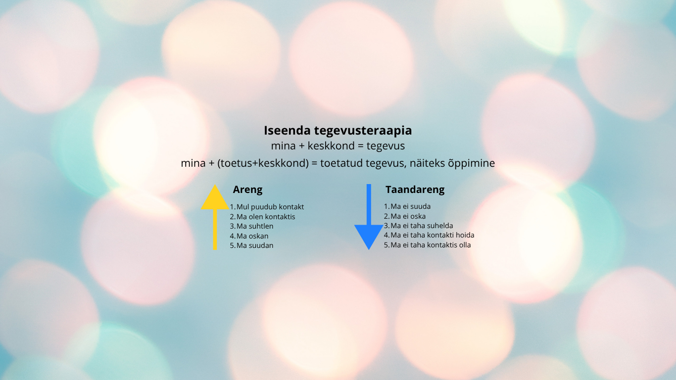 Iseenda tegevusteraapias õpitu kiirendab erivajadustega inimese arengut, sest inimene ise hakkab paremini orienteeruma enda sisemistes takistustes ja kergemini märkama enda lähima arengu tsoone.